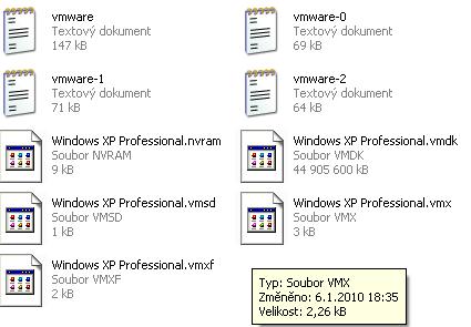 Vzasade se to nerozbaluje ale otvira/spousti v tomto souboru. VMWARE vytvori okno a v nem Ti nabehne NOVY pocitat, od zacatku az do konce. Toto jsou soubory tohoto pocitace - virt. bios, system, programy atd..