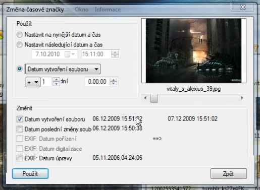 No proč používat jednoúčelový, placený (batch editing is available only with the Pro versions - 40 ojro- to se můžou jít vycpat) a např. pokud jsem koukal dobře, nemodifikující souborový časový atribut, program? Raději zadarmo a je to funkce navíc k jinak vynikajícímu správci.