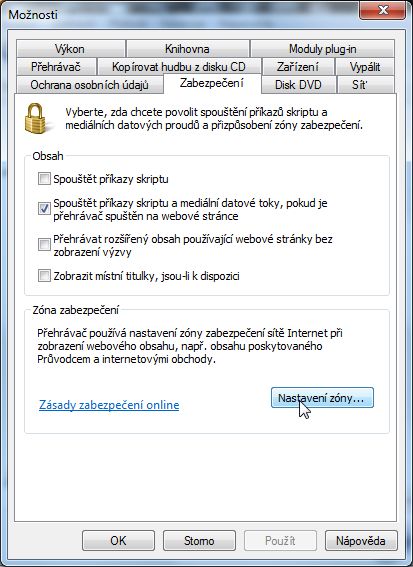 zóna, pokud se v tom neorientuješ, by měla být nastavena pro internet minimálně na střední úroveň.