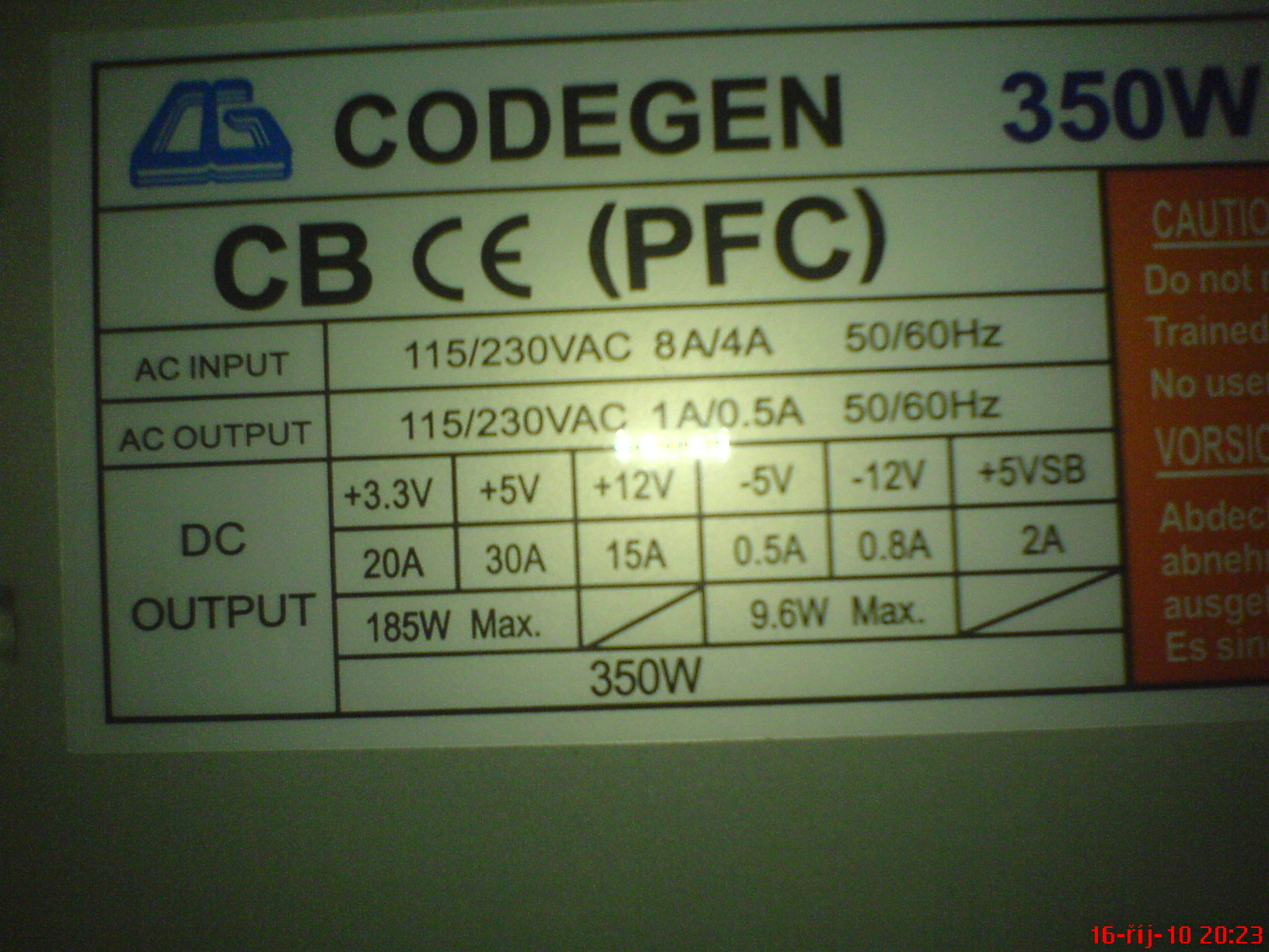 Taky mě teď napadlo že je možny že to vždyckky krachne kvuli tomu zdroju CODEGEN 350W....v PC mám hodně ventilátorů.