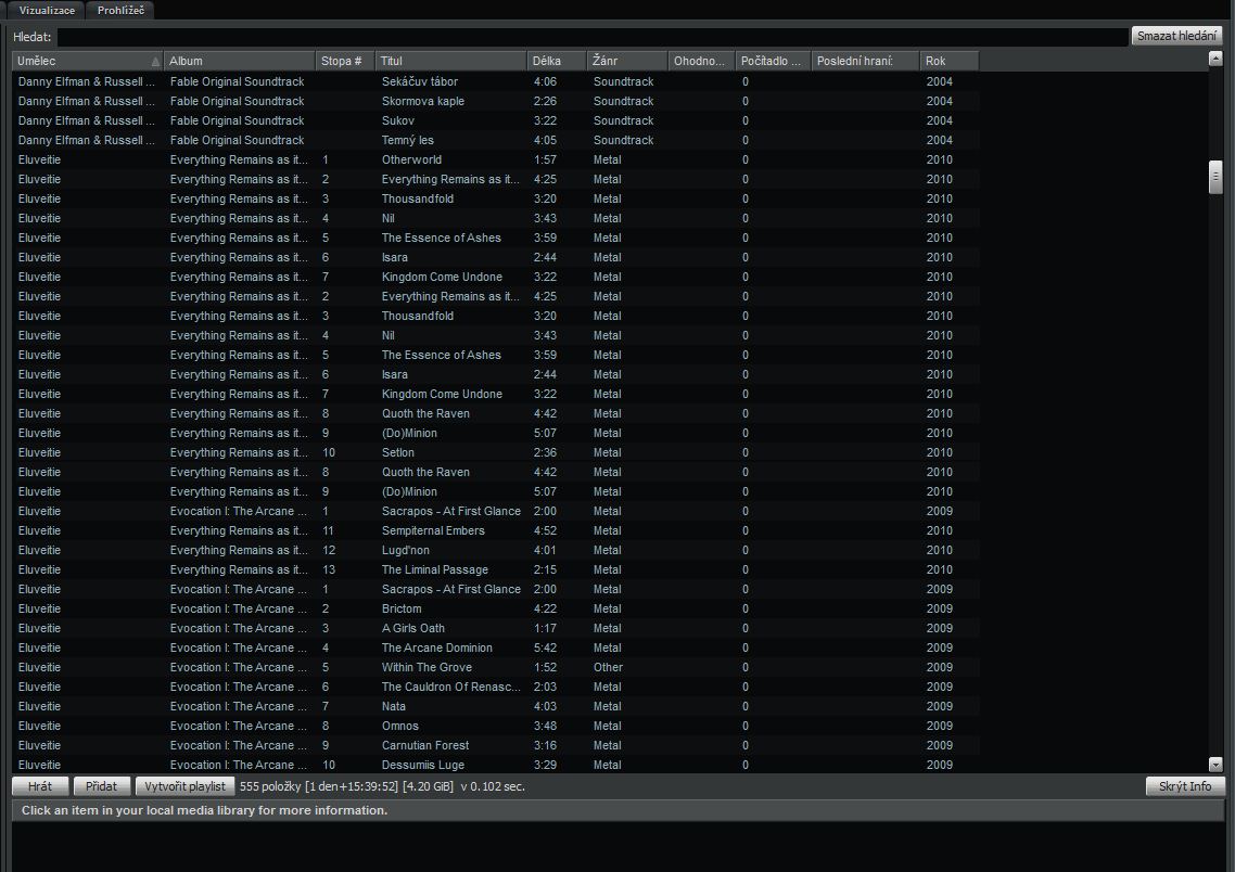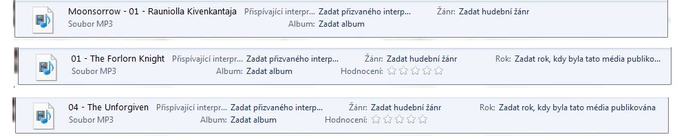 Další mazání databáze nepomohlo, tak sem chtěl smazat cesty k výchozím souborům, který sou vytvořený v knihovně hudby ve win 7. Udělal sem to špatně, a smazal sem je a i všechny písničky... po nějáký době, když jsem všechny vylovil z koše a roztřídil, zjistim zdrcující věc, že se mi kompletně vymazali všechny informace u všech písniček. Nemylsim tim pouze informace ve WMP knihovně, ale informace přímo z písniček, takže všude neznámý interpret, neznámý rok, neznámý žánr apod. vyjímaje artoworků, který fungujou.
