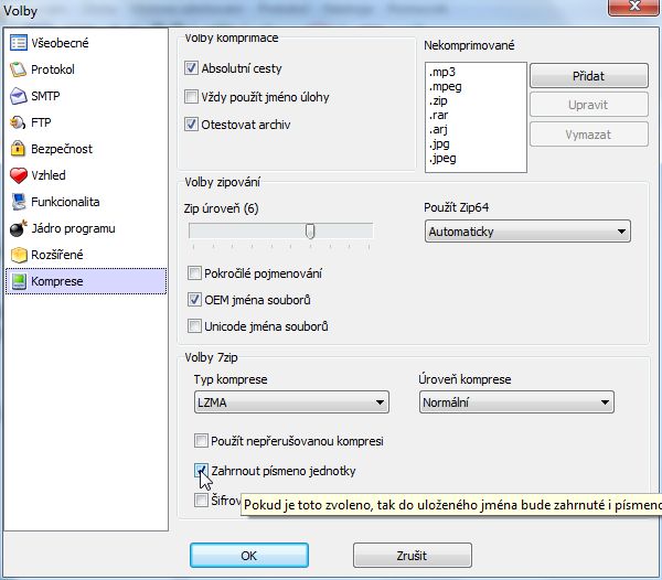 nástroje/volby/komprese