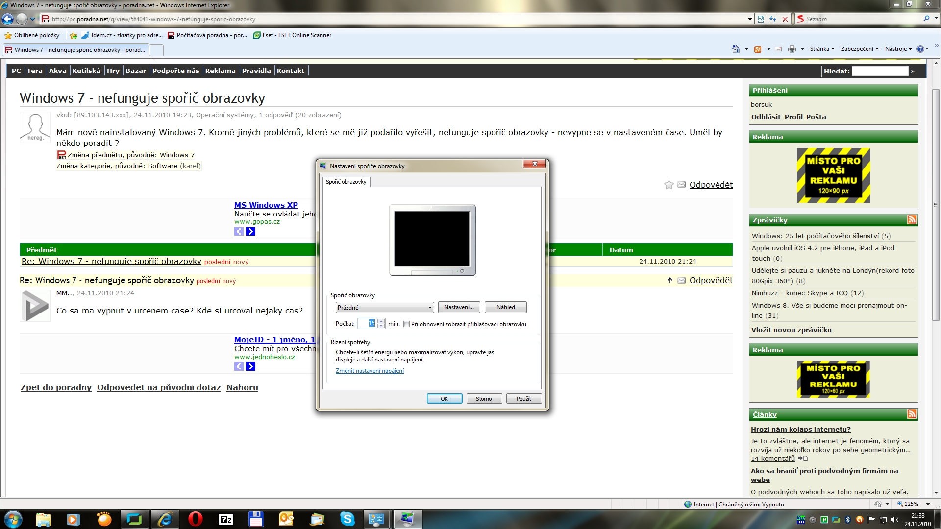 Přidat otázku mezi oblíbenéZasílat nové odpovědi e-mailem Windows 7 - nefunguje spořič obrazovky