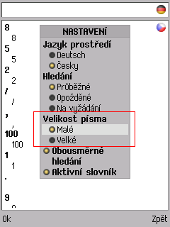 Náhodně jsem ten slovník spustil opět v JBlend a funguje jak má, do menu se dostanu, písmo lze zvětšit. Stále je ale zbytečně malý, ale i tak pokrok.