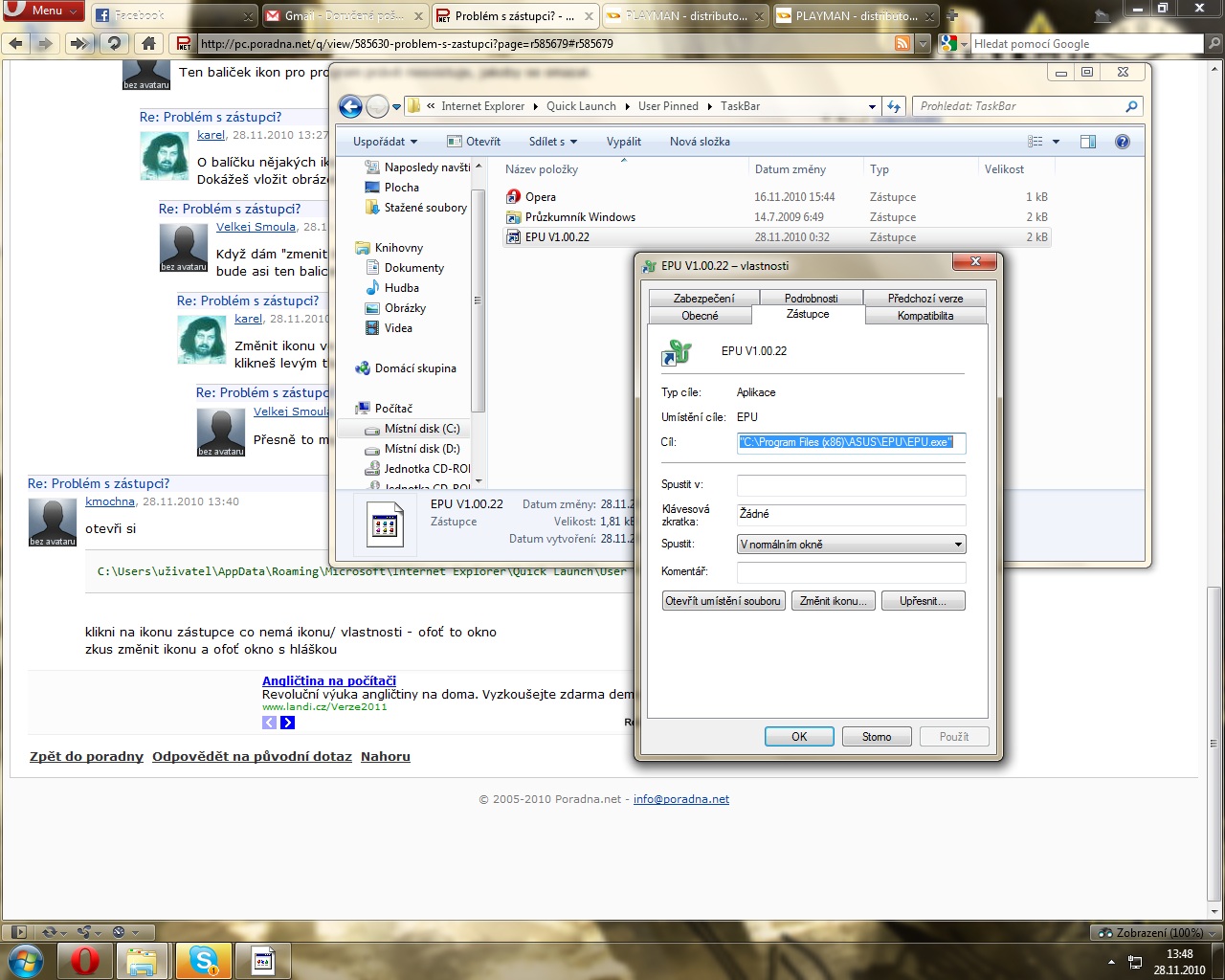Změnit ikonu ve vlastnostech programu je zase co? Klikneš na zástupce pravým tlačítkem, zvolíš Vlast…