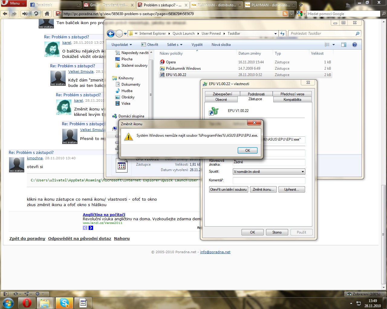 Když dám "zmenit ikonu" ve vlastnostech programu (pravy click) hned mi to ukaze ze nebyl nalazen xxx…