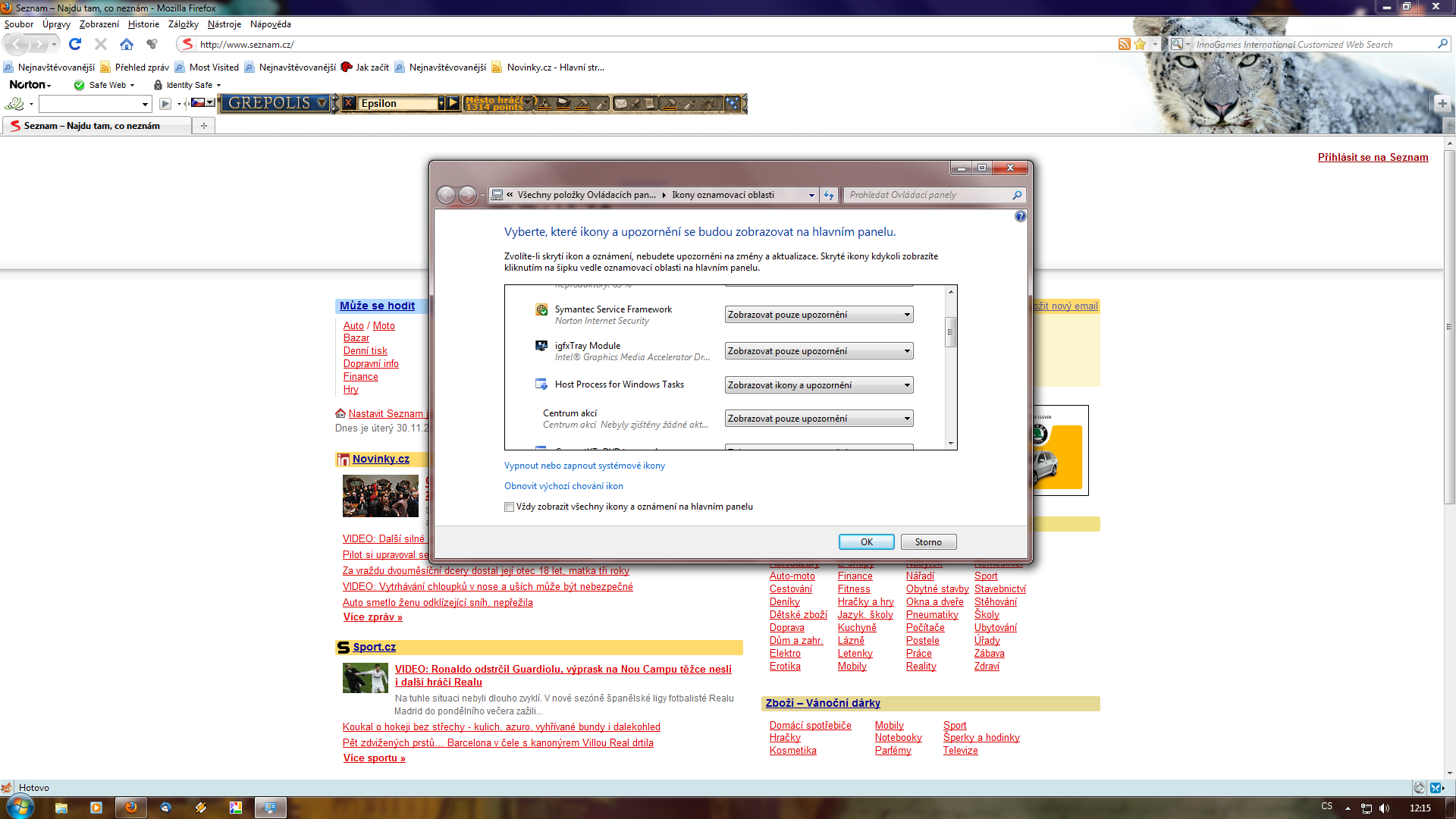| Zvolit Skrýt ikony a upozornění a dál neřešit. Užitečnější bude nastudovat, jak se snímá aktivní okn… poslední karel 30.11.2010 14:59 |
