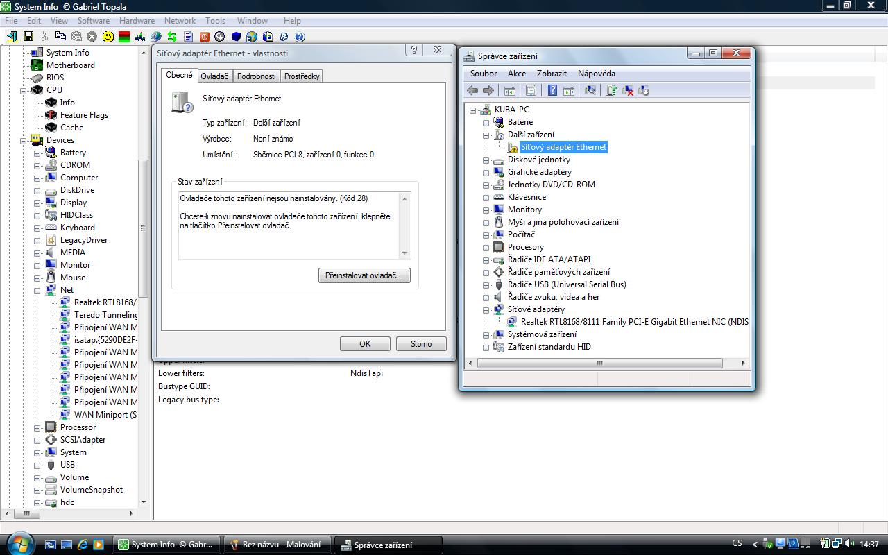 stáhl jsem si program na lehčí práci se sítí a píše to všechno v poho jen DHCP 0.0.0.0 , Síťový adaptér ethernet- Ovladače tohoto zařízení nejsou instalovány.