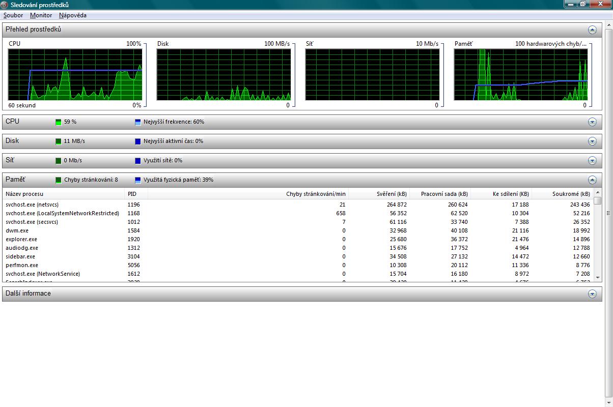 Takže tam byl Tento počítač nebo jeho zástupce? Nic to nezpomaluje. Když se ti nepodaří spustit Správce úloh v době, kdy je vytížen CPU, stejně nic nezjistíš. Paměť má být používaná, tu už neřeš.