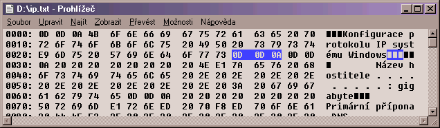 v pspadu, v ascii-prohlížeči který má každý správce souborů, nebo v hexaeditoru by chtělo prozkoumat tvůj "sloupcový" text.