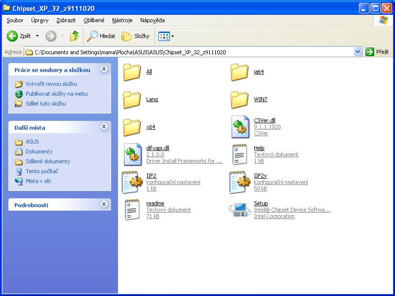Navic teda nesu zadne odbornik, ale myslim si, ze v tom ovladaci chipsetu chybi prave ovladac pro XP, i kdyz je to stazeno z jejich webu, kdyz jsem zatrhl XP.