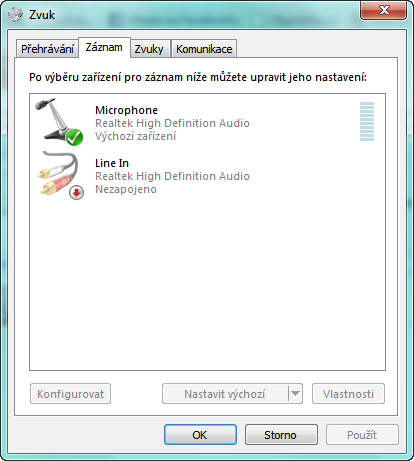 dole na liště vpravo máš reproduktor zmáčkni pravým na myši a tam si dej zařízení pro záznam,jestli…