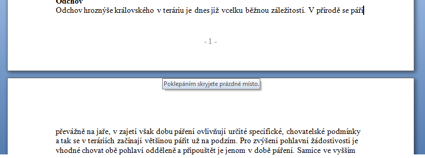 Mám sice 2007, ale to by mělo být stejné. Takovou volbu, která nastaví na default zobrazení "Koncept" jsem nikde nenašel. Nicméně když jsem zkusil soubor (text + obrázky) zobrazit v "konceptu" tak se obrázky nezobrazí - zůstane po nich prázdné místo. Což mě osobně dost vadí, jestli ti jde jen o ty mezery mezi stránkymi, tak ty by měli jít odstranit "sloučením" nebo jak bych to napsal. Při zobrazení "rozložení při tisku" umístíš kurzor myši mezi dvě stánky (změní se na dvě malé šipky proti sobě - na screenu to není vidět) a 2x klikneš viz. obrázky