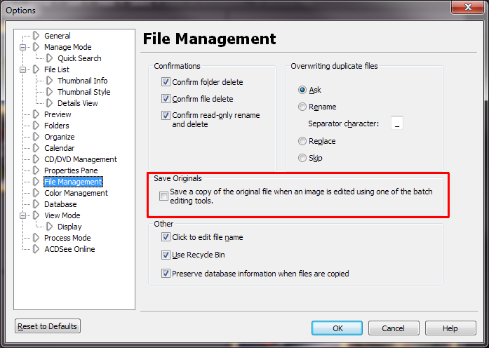 Myslím že je to toto: Tools - Options - File Management - odškrtnúť Save originals