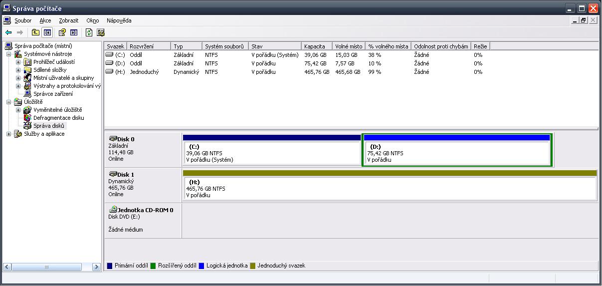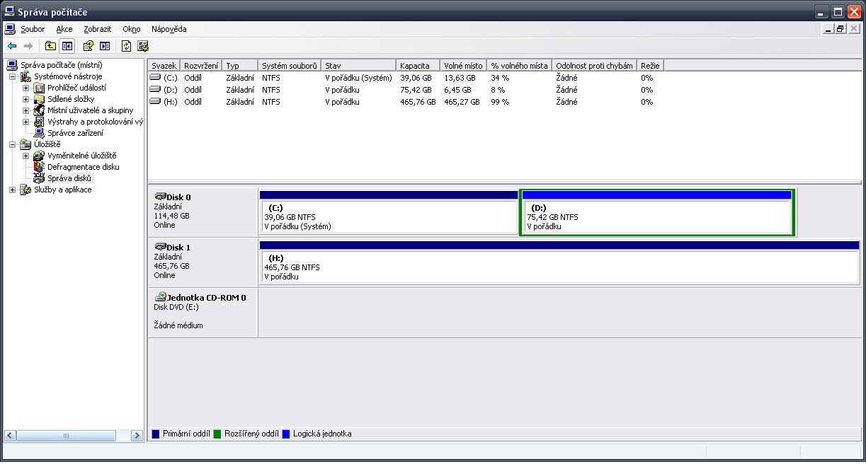 Chci aby na něm zbyl jen jeden oddíl a ne Dva jak jsou teď. Ten oddil D: mi je tam na prd když data budu dávat na novy HDD