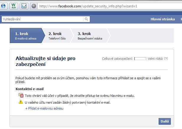 Facebook nepozaduje zadne overeni, natoz zadavani telefonniho cisla.