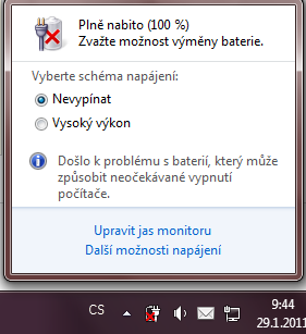 Ale jak to vypnout? Tu hlášku? Notebook má 3/4 roku, výdrž baterie pořád dostatečná, tak novou baterii v plánu kupovat nemám.