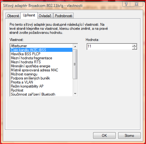 Zkusil bych ve vlastnostech adaptéru změnit kanál.