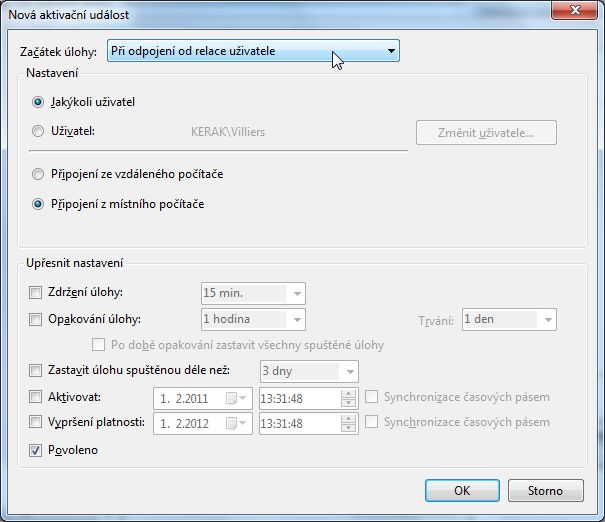 Dokážu si nastavit synchronizaci po zapnutí počítače se spožděním 30s než se zmapuje síť a krásně mi to funguje, problém mám se synchronizací při vypnutí počítače. Na všech počítačích je systém windows 7 home premium, který v plánovači úloh neumožňuje vytvořit akci spojenou s vypnutím počítače. Pokud by šlo pouze o mě, není problém si dát na plochu soubor s nastavenými pravidli pro synchronizaci a vždy před vypnutím počítače na něj kliknout, problém je že ne všichni si na to vždy vzpomenou a potom nastává problém že je na více počítačích několik různých verzí dokumentů a já ten nepořádek musím řešit.