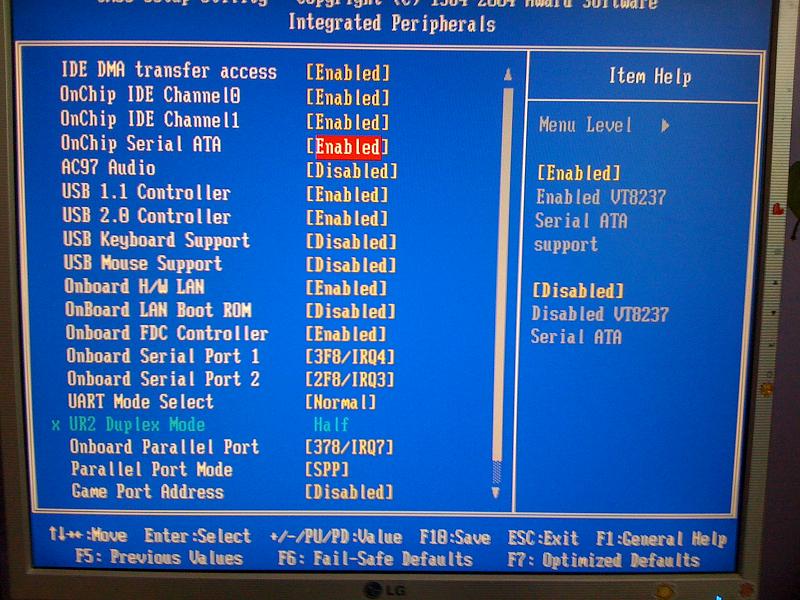 Tak tady je fotka. OnChip Serial ATA jsem zkoušel dat na Disabled, ale vyšlo to nastejno.