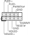 Obrázky jsou naprosto jasné, k tomu nepotřebuješ nic číst. Na straně 14 Quick installation guide máš zapojení "front panel" - dvě řady pinů, v jedné jsou 4, v druhé 5. Začínáš Power LED+, pak PowerLED-, pak tlačítko Power a vedle taky Power ( na polaritě nesejde, je to jen propojení), pátý pin chybí. Pod tím je řada 5 pinů: HD LED+, HD LED-, na další dva připojíš RESET, pátý zůstane prázdný
