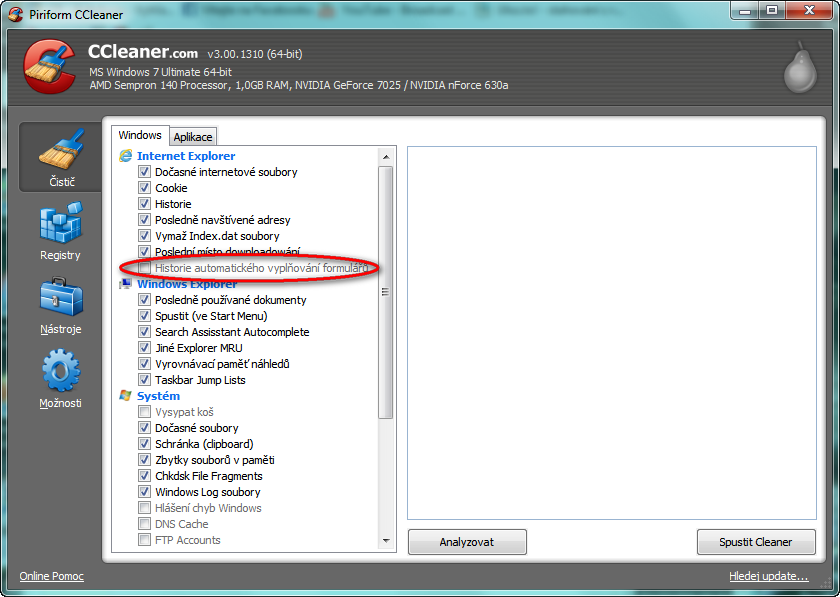 Nástroje - Možnosti - Soukromí - Historie