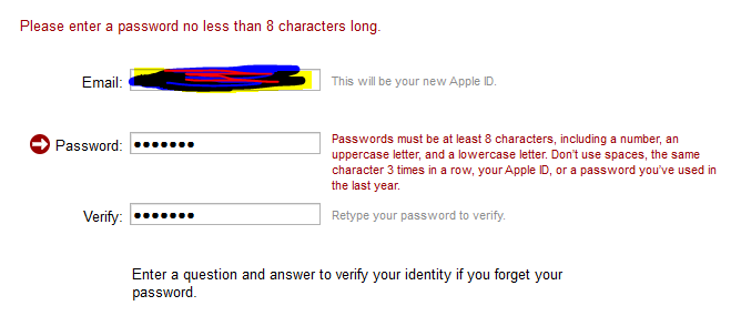 chtěla jsem si založit Apple ID ale v tom mi nejde heslo..nevíte co mam dělat?více pochopíte z obrázku.