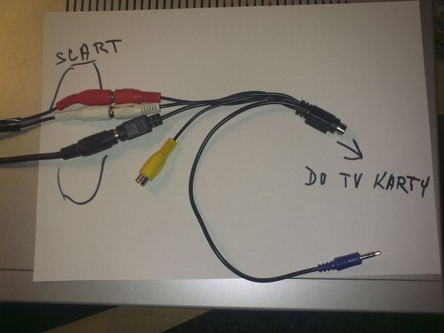 Takze treba pouit redukciu Scart (out) => Zlty, Biely a Cerveny Cinch.