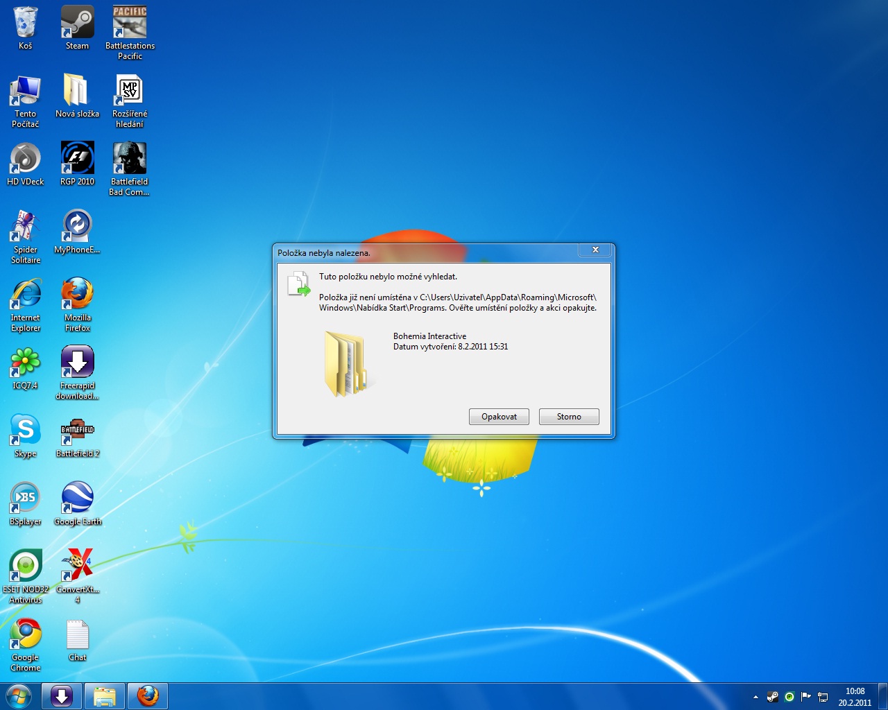 Zdarte,nainstaloval jsem si jednu hru kterou jak jsem dohral tak jsem ji vymazal...vsechno jsem smazal ale zustal mi soubor v nabidce Start ktery nejde vymazat a pise: Polozka jiz neni umistena v C:/Users/AppData/Roaming/Microsoft Windows/Nabidka Start/Programs. Slozka ma 0 bajtu,nevim jeji umisteni bo jsem nenasel v Users slozku AppData,chtel bych tu slozkou vymazat prez Unlocker ale neznam umisteni a hledal jsem snad vsude mozne.