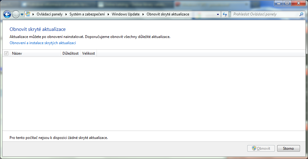 Nemáš náhodou nějakou aktualizaci ve skrytých ( nenainstalovaných )aktualizacích?