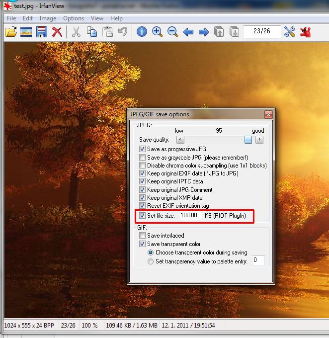A ja len doplním MM, že ak máš Irfan nainštalovaný aj s pluginmi, tak si v uvedenom okne zadáš priamo veľkosť 100 kB a nemusíš sa zdržovať nastavovaním percenta kompresie.