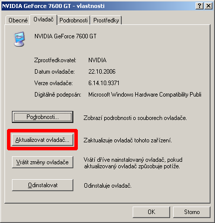 - Dvojklik na zařízení, které potřebuje ovladač (obvykle je na něm otazník) - Záložka Ovladač - Aktu…