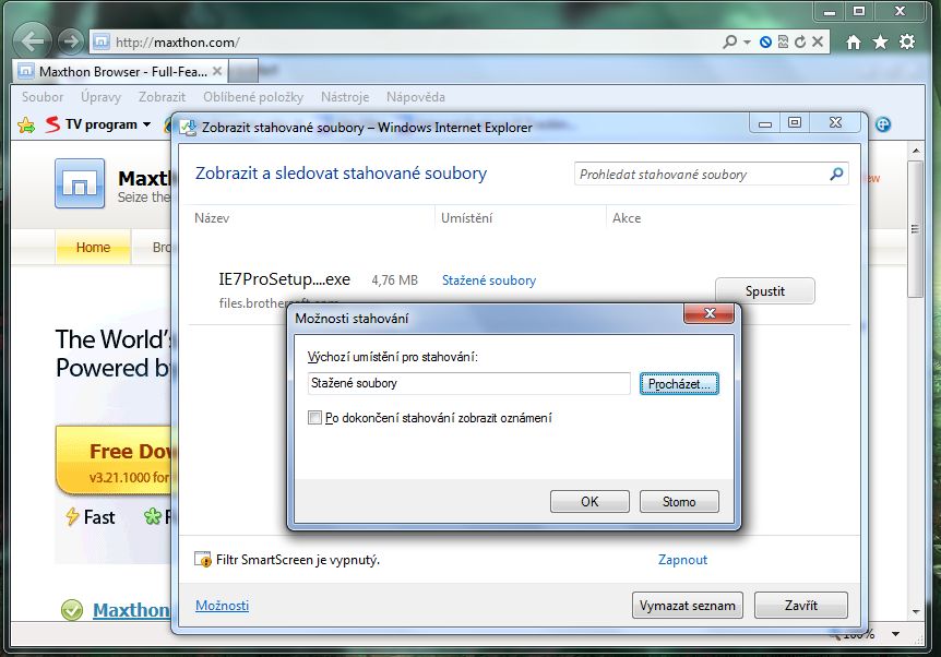 Ano, toto se zobrazí při každém stahování. Problém je v tom, že tam chybí checkbox Nezobrazovat okno stahované soubory nebo ještě lépe Nepoužívat správce stahování. A tuto možnost se mi nepodařilo najít ani v Nástojích.