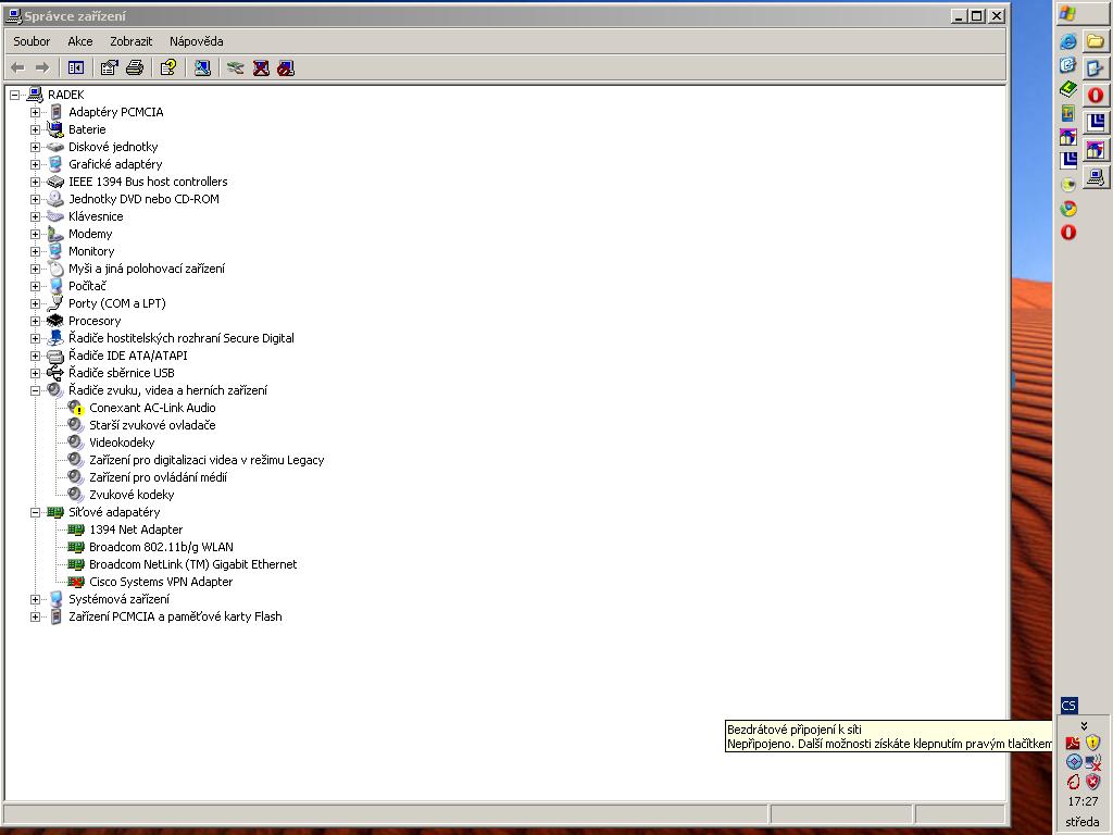 Odebrat, vyhledat změny nebo zkusit přeinstalovat Conexant AC-Link Audio Driver. U toho vykřičníku t…