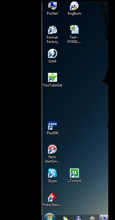 Dalsi dotaz se tyka plochy pocitace. Pri jakekoliv tapete vlevo zustava asi milimetrovy bily prouzek. Prikladam screen. Napadla me klasicka kalibrace jako na monitorech, ale na notebooku nevim jak na to. Ikdyz si nemyslim, ze je to timto, jelikoz lista start je az ke kraji.