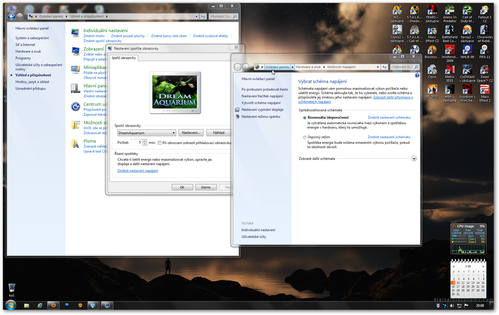 V Nastavení spořiče obrazovky (Ovládací panely - Individuální nastavení) je vpravo tlačítko Náhled -…