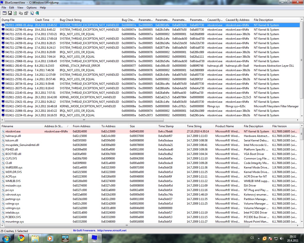 podle dumpů ti to padá snad denně, skoro všechno to jsou zásadní hw vady.