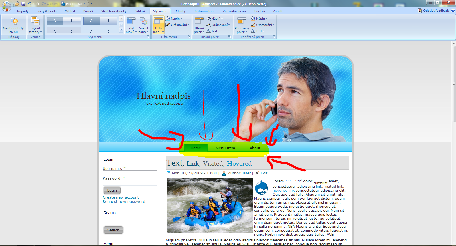 Ja uz si Drupal nepamatuju, ale treba u Joomly musis vetsinou pro ruzny vzhledy delat samostatny men… poslední