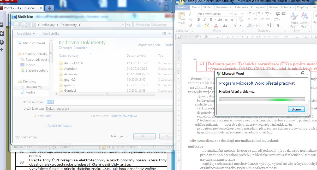 Stejná situace nastává i v případě, že jsem třeba ve MS Word (legální) a chci i vložit obrázek, který je umístěn někde v počítači. Totéž může nastat, kdyz si udělám například výstřižek a chci ho uložit a opet,kdyz se mi to ptá kam uložit tak se to sekne a po chvilice nabíhání napíše, že program byl ukončen. Nastává to tedy v případech, kdy se kliká na například procházet, nebo hledání cesty, kam chci uložit, nebo otevřit nebo vložit nějaký soubor jinam.
