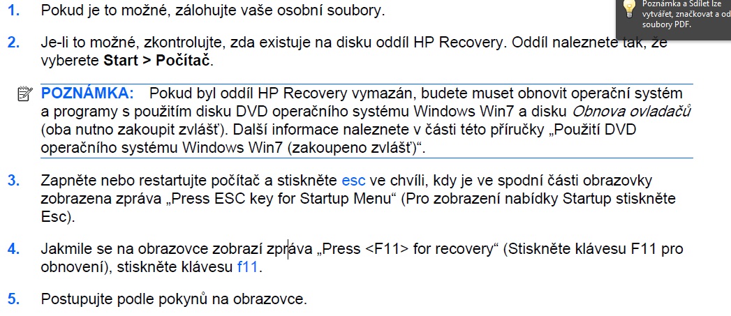 Tak jsem to zkoušel obnovit, ale neúspěšně. Když zmáčknu po startu esc, tak se nabídka F11 nezobrazu… nový