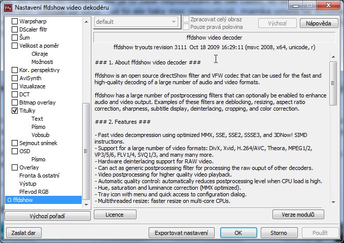 Já jsem se s tím drbal asi měsíc, než jsem přešel k VobSubu. Mnoho verzí, mnoho odinstalaček. To je třeba pochopit: sám používám jiné playery s interními dekodéry, zákazníci jsou ale zvyklí na WMP. Proto ta eskamotáž. Ffdshow pro 64-bit platformu jsem vzdal někdy před půlrokem, instaluju DVS.