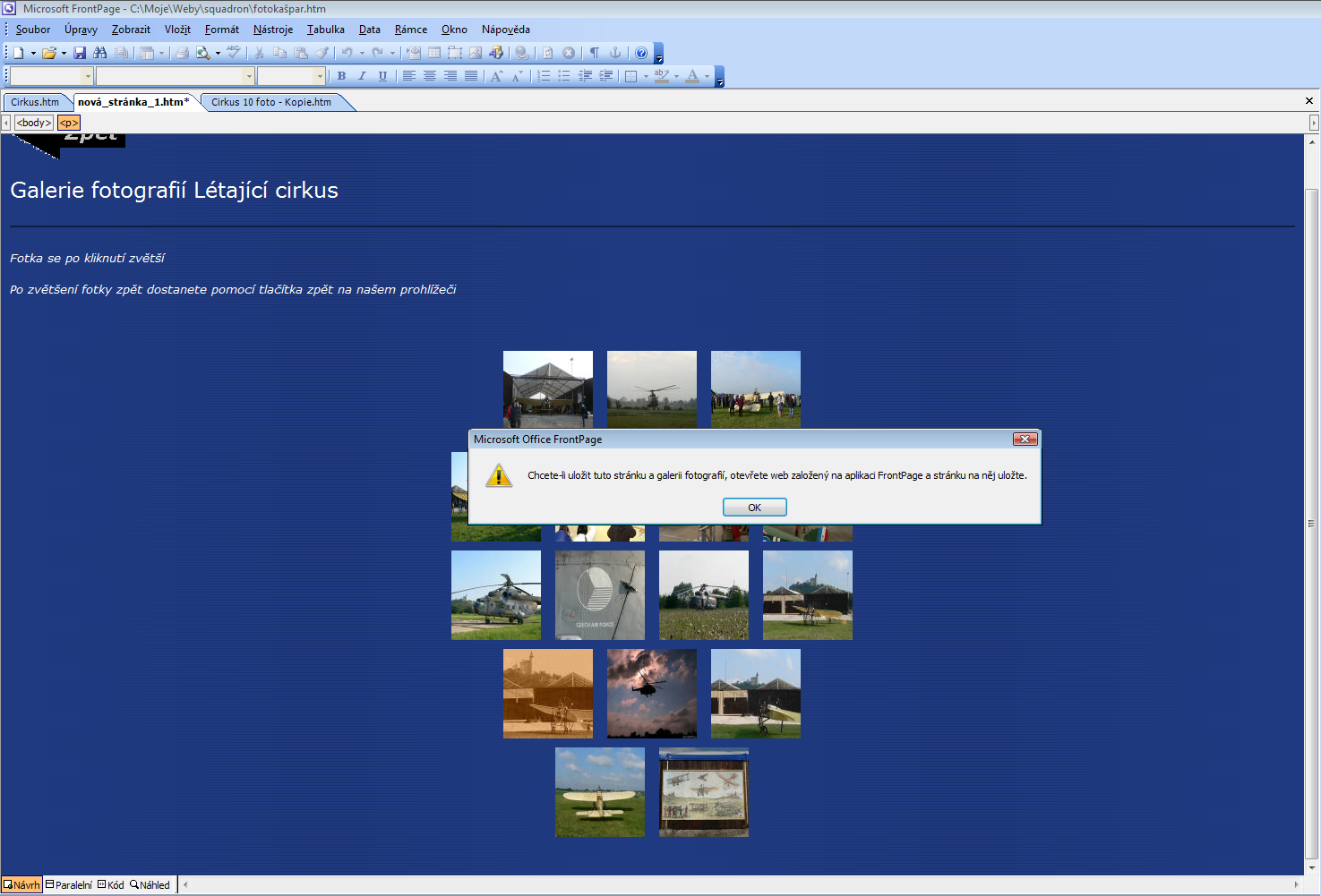 Mám frontpage 2003. Dělám si stránky (fotogalerii) a když ji chci uložit napíše to: viz příloha