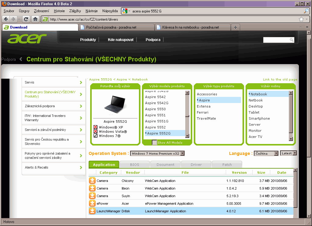 ne mám acera aspire 5552 G a už jsem ten ovladač hledal ,ale bohužel nenašel, jestli můžu poprosit nepodíval byste se někdo kde se dá stáhnout??