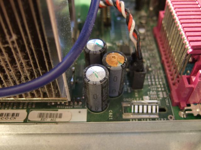 pokial sa jedná o starší pc,nebolo by od veci pozrieť,či náhodou na nejakej prídavnej karte/grafickej karte ap/ alebo na zákl.doske nedošlo k nafúknutiu niektorých kondenzátorov-hlavne v okolí procesora a napájacieho konektora na doske,u starších komponentov hlavne z nižšej cenovej kategorie to nieje žiadna vzácnosť,že časom dôjde k vyschnutiu kondenzátorov alebo naopak k ich nafúknutiu...viz obrázok
