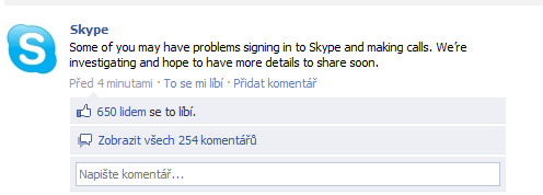 Nejde... už jsem to přeinstaloval několikrát, pak mě napadlo mrknout se na poradnu . Horší je, že se nedostanu k nějakým důležitým informacím, které jsme řešili přes skype... Edit: nejde jim ani web, na Facebook napsali: