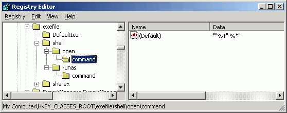 program regedit.exe ať si přejmenuje/zkopíruje na regedit.com, a zedituje položky: