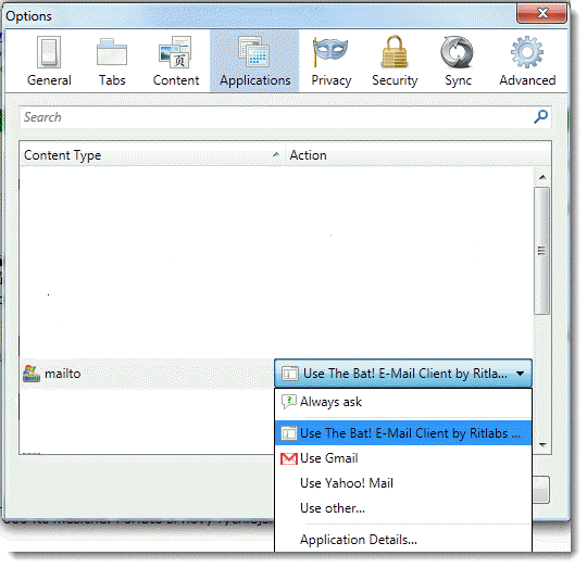 Ve firefoxu nástroje, možnosti, typy souborů, mám položku mailto a nastavenou výchozí aplikaci thunderbird.