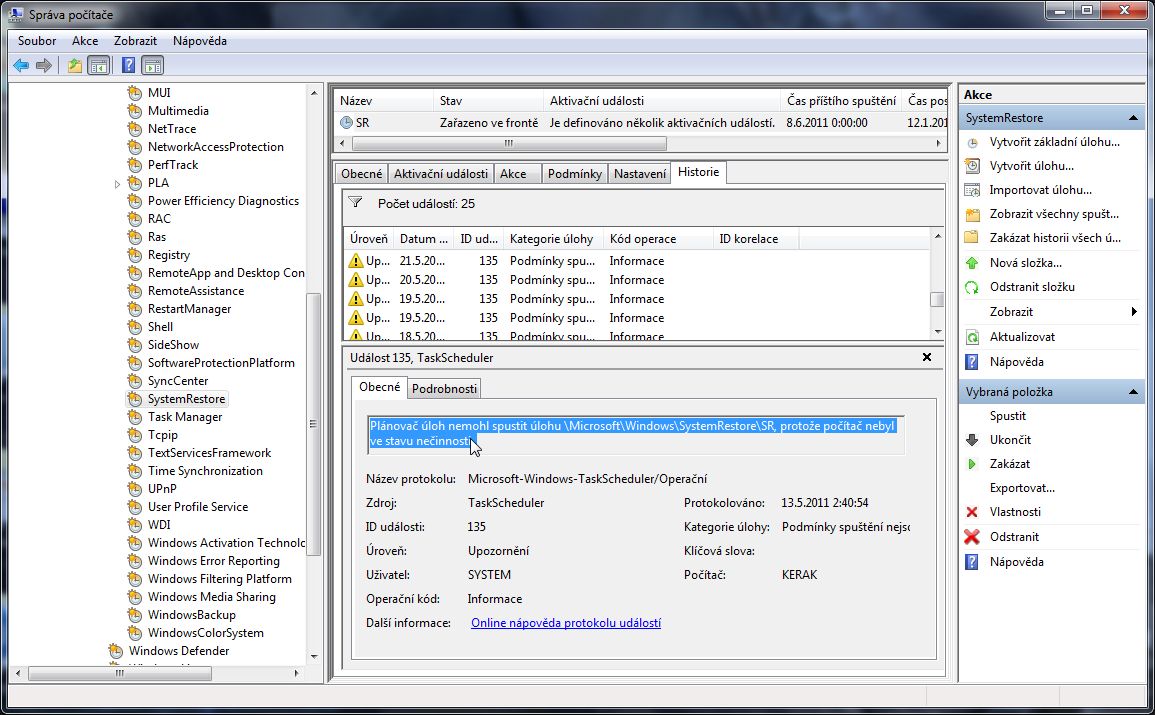 takze,mam to tam,je nastaveno aby se to provadelo po startu systemu,podminky nejsou zadny a stejne se po startu systemu nic nevytvorilo...(to " pri necinosti" jsem pro jistotu vypnul),ani v historii nic novyho nevidim