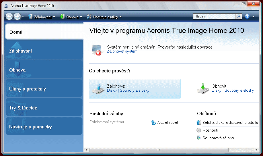 neklikáš na nějakou hovadinu "záloha jedním tlačítkem"? něco se "secure zone" nebo "online záloha"?