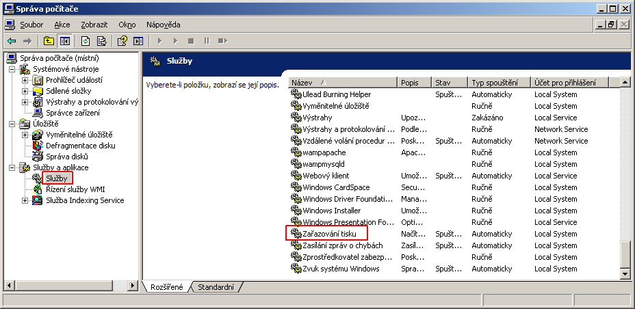 když chci přidat tiskárnu, napíše mi to, že místní služba zařazovaní tisku není spustena. Podle webu microsoftu - http://technet.microsoft.com/cs-cz/library/cc78103 4(WS.10).aspx - jsem se dostal do tech sluzeb, kdyz se mi ale zobrazi ten seznam, nikde neni Zarazovani tisku (podle microsoftu ma byt v podokne). Nevite prosim co s tim ?